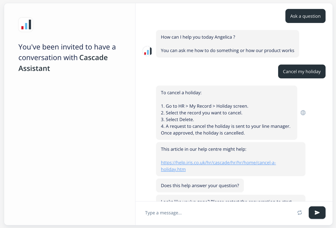 Chatbot powered by Voiceflow that connects to the help centre and internal systems to provide